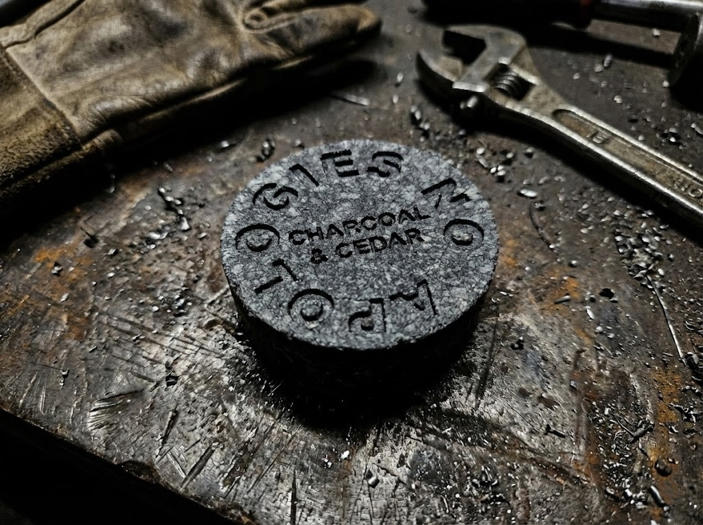 Handmade tallow & beer soap bar for men who work. Long-lasting, hard bar with a bold CHARCOAL & CEDAR profile. 4.6 oz (132 g).