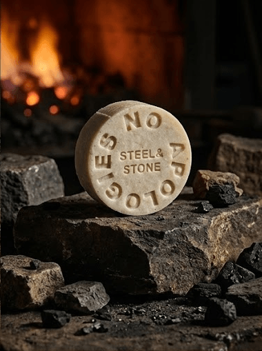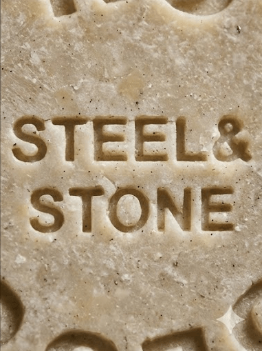 Handmade tallow & beer soap bar for men who work. Long-lasting, hard bar with a bold STEEL & STONE profile. 4.6 oz (132 g).